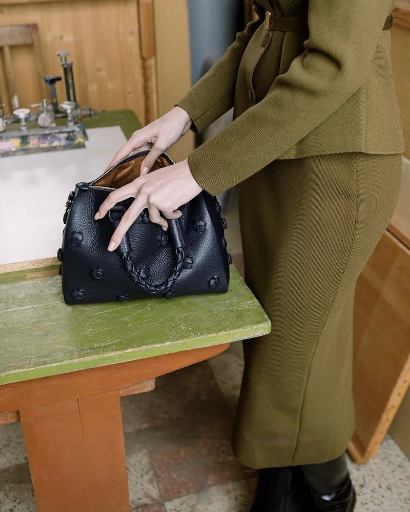 Элегантная модель из премиальной итальянской кожи с выразительной и деликатной текстурой. Архитектурная форма и мягкий объём подчёркнуты фирменными кожаными узелками PANASKIN, создающими рельеф и игру света на поверхности. Компактный формат делает сумку удобным выбором для повседневного использования.