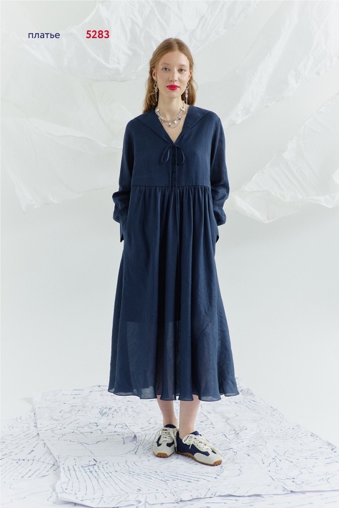 Авторское платье из 100% льна. Струящаяся ткань. Приталенный фасон. Треугольный вырез горловины, декорированный милым бантиком. Отличный выбор на каждый день или на праздник.