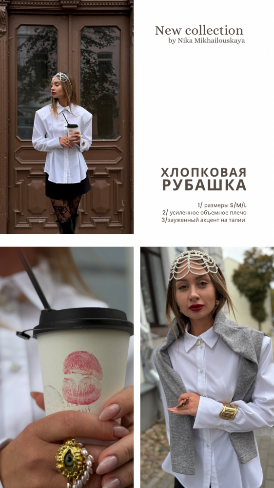 Элегантная и женственная рубашка из высококачественного хлопка красивого белого цвета - must have вашего гардероба