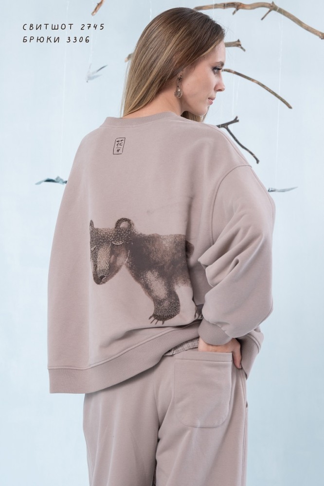 Свитшот в цвете капучино с принтом от авторского бренда Lea Lea